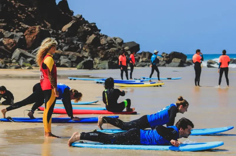 The lesson includes Surf sessions of 4-5 hours, surf coaching and theoretical education, equipment during and after lessons available too, max. 6 students per coach ratio, transfer to the beach for the lesson.