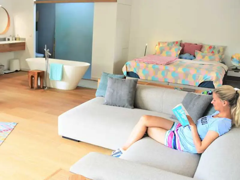 In 2013 we started the project "Luxury surf camp for adults age 30+". The result is a boutique style tropical oasis in the surfing mecca Seignosse / Hossegor. We offer surf courses that are specially tailored to adults and older people. Each of the 5 luxurious double rooms has a modern bathroom, king-size bed and terrace.You can walk to the beach (10 min.), to the lake (5 min.) or the center of Hossegor (30 mins.).