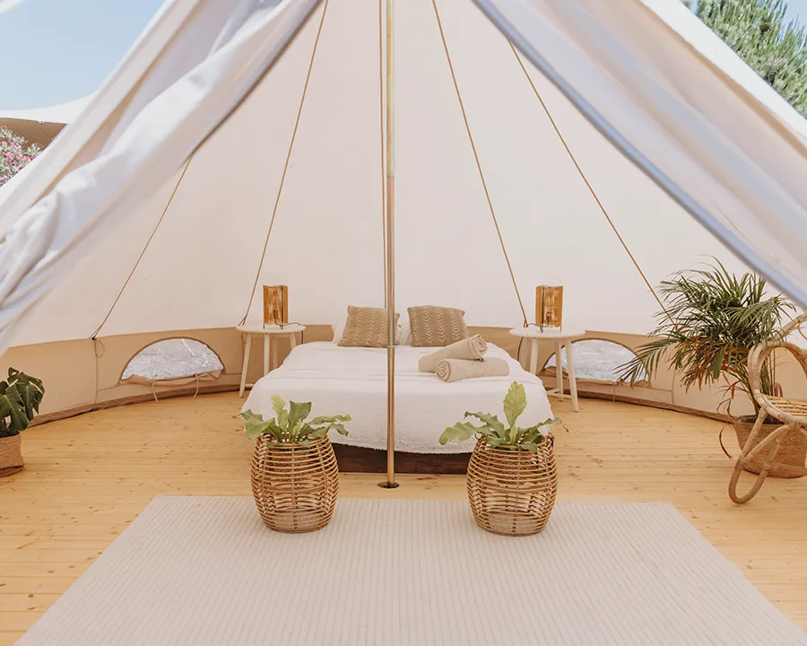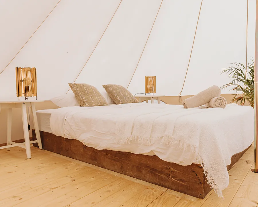 Our accommodation is designed to make the most of outdoor living while still offering comfort and choice. Guests can choose between glamping tents, sharing tents or private bungalows, depending on how much comfort, privacy or social atmosphere they are looking for.