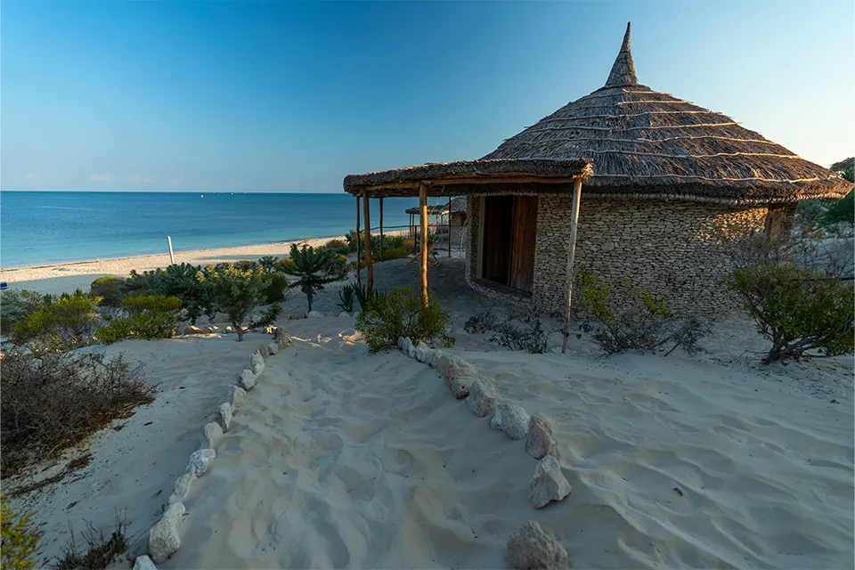 This exclusive getaway sits on the northern edge of Befasy, a quiet beach village reached by a scenic boat journey from Toliara, known locally as the City of the Sun.