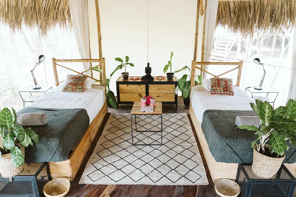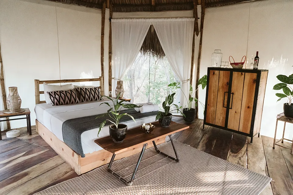 Our accommodation is designed to feel relaxed, social and close to nature. Built with sustainability in mind, the eco lodges offer a comfortable place to rest and reset between surf sessions, while staying connected to the camp’s communal atmosphere.