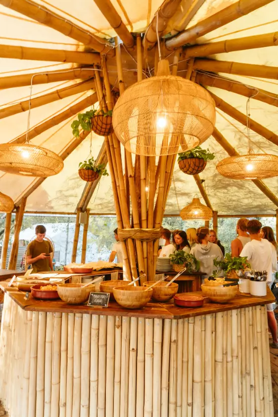 A quieter, more private setup with a cosier feel. Glamping includes bedding and towels, power and lighting, and access to a dining and bathroom area reserved for glamping guests.