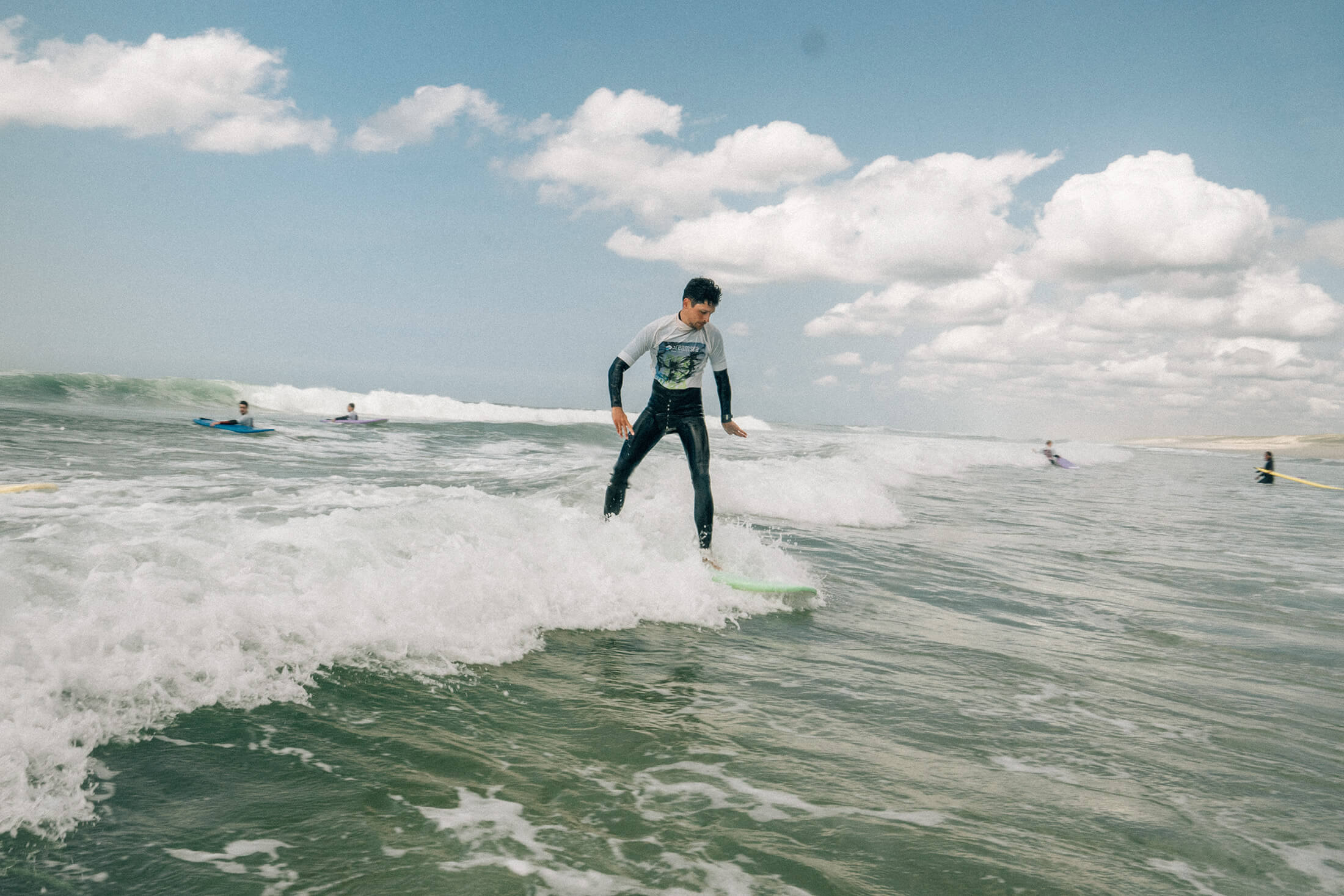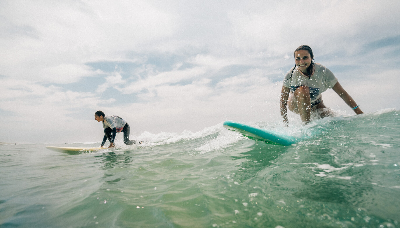 Moliets is a brilliant place to learn and progress: consistent beach breaks, loads of space, and an easy routine that gives you plenty of repetition. Coaching is structured around clear levels, with options to surf a little or go all in.