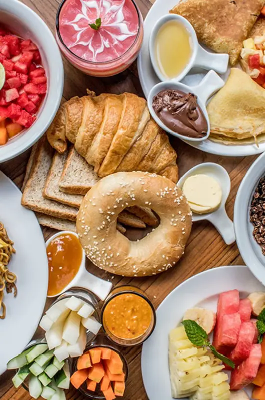 Our restaurant celebrates island living with Indonesian, Mediterranean, and international flavors. Breakfast features fresh pastries, tropical fruits, and made to order options. Lunch and dinner adapt to every palate vegetarian, gluten-free, kids' favorites, romantic date nights. Eat together. Eat well. Eat with a view.