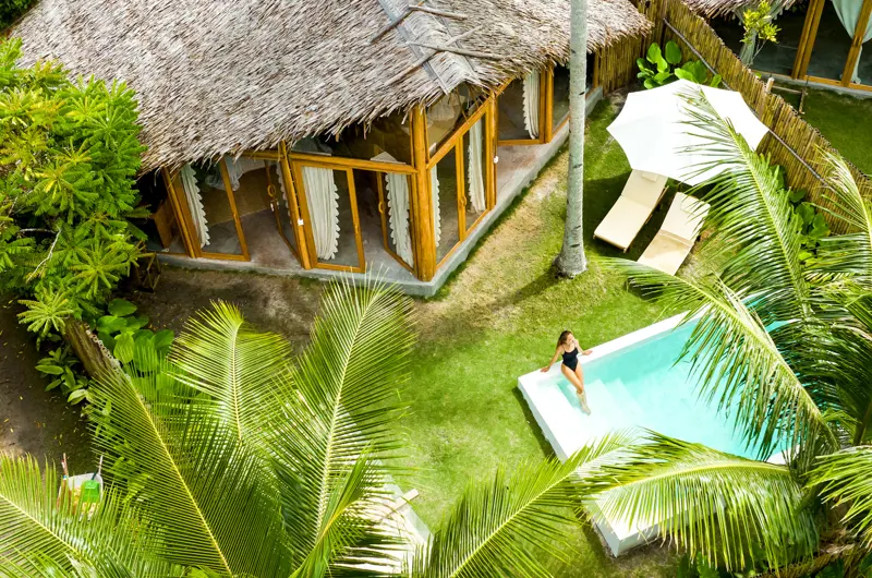 Between dawn patrol and afternoon sessions, the whole family recharges together. Lush tropical gardens for morning walks. Natural stone pool surrounded by palm trees. Bubbling jacuzzi where tired muscles melt away. Pool bar serving cold drinks, fresh smoothies, and hand-crafted cocktails. This is where surf stories get told and new friendships form.