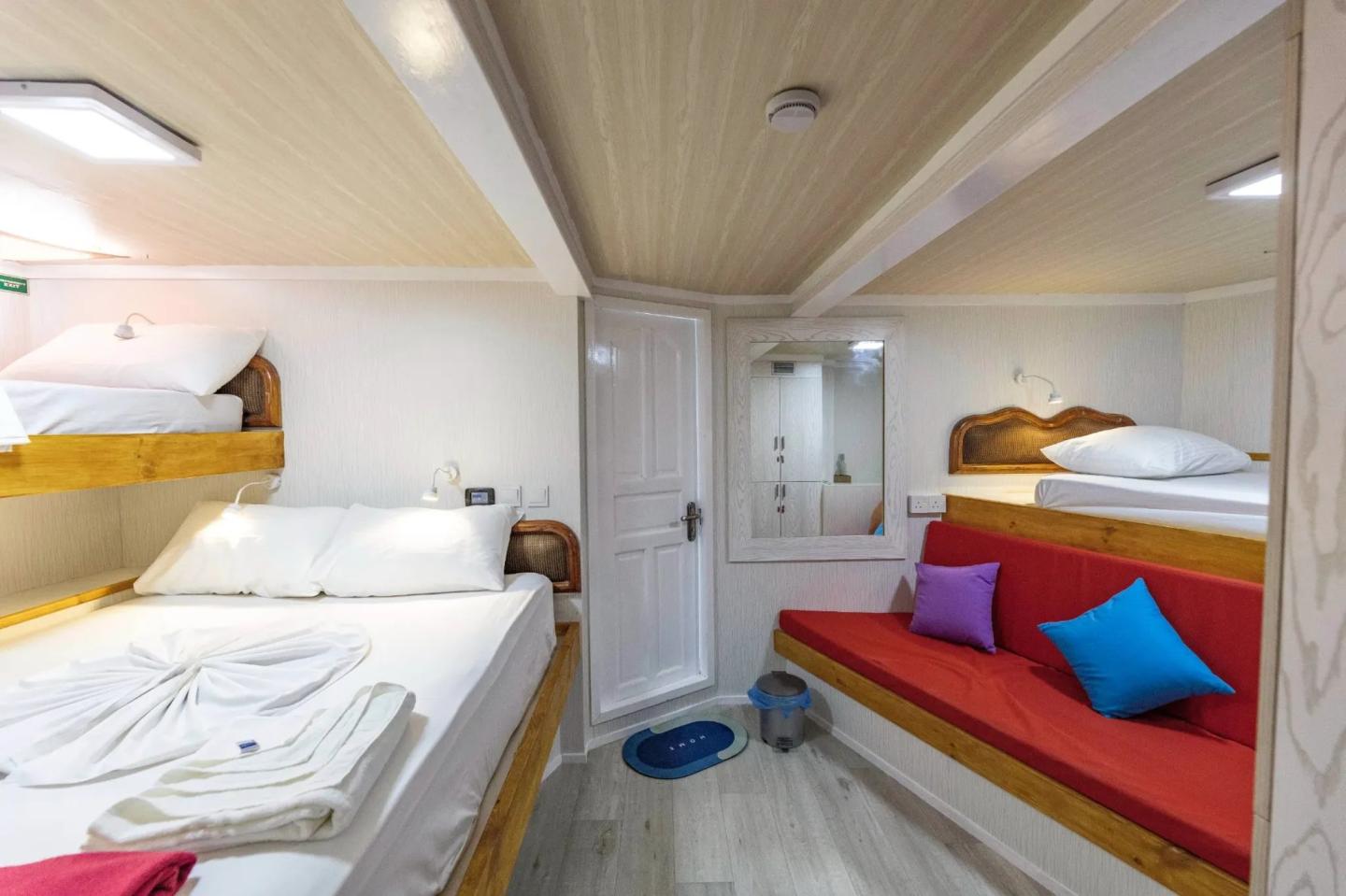Our accommodation is a fully crewed surf boat designed for relaxed, all-inclusive living on the water. With comfortable cabins, shared social spaces and full-board catering, life on board flows easily between surf sessions, swims, snorkelling and time to unwind. Waking up anchored in turquoise lagoons and travelling together from wave to wave creates a close, supportive atmosphere that reflects the heart of the Salty Sisters experience.