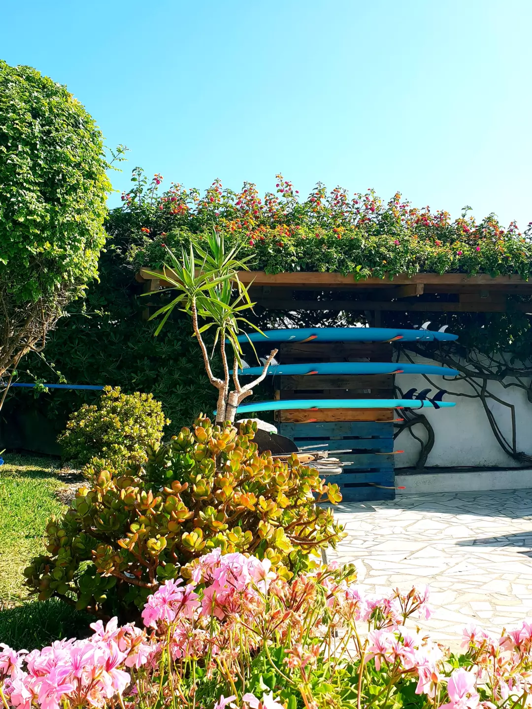 The surf house is located just a short walk from the beach and close to local cafés, bakeries, restaurants, surf shops, and bars. Many guests choose to walk or skate between the house, the beach, and town.