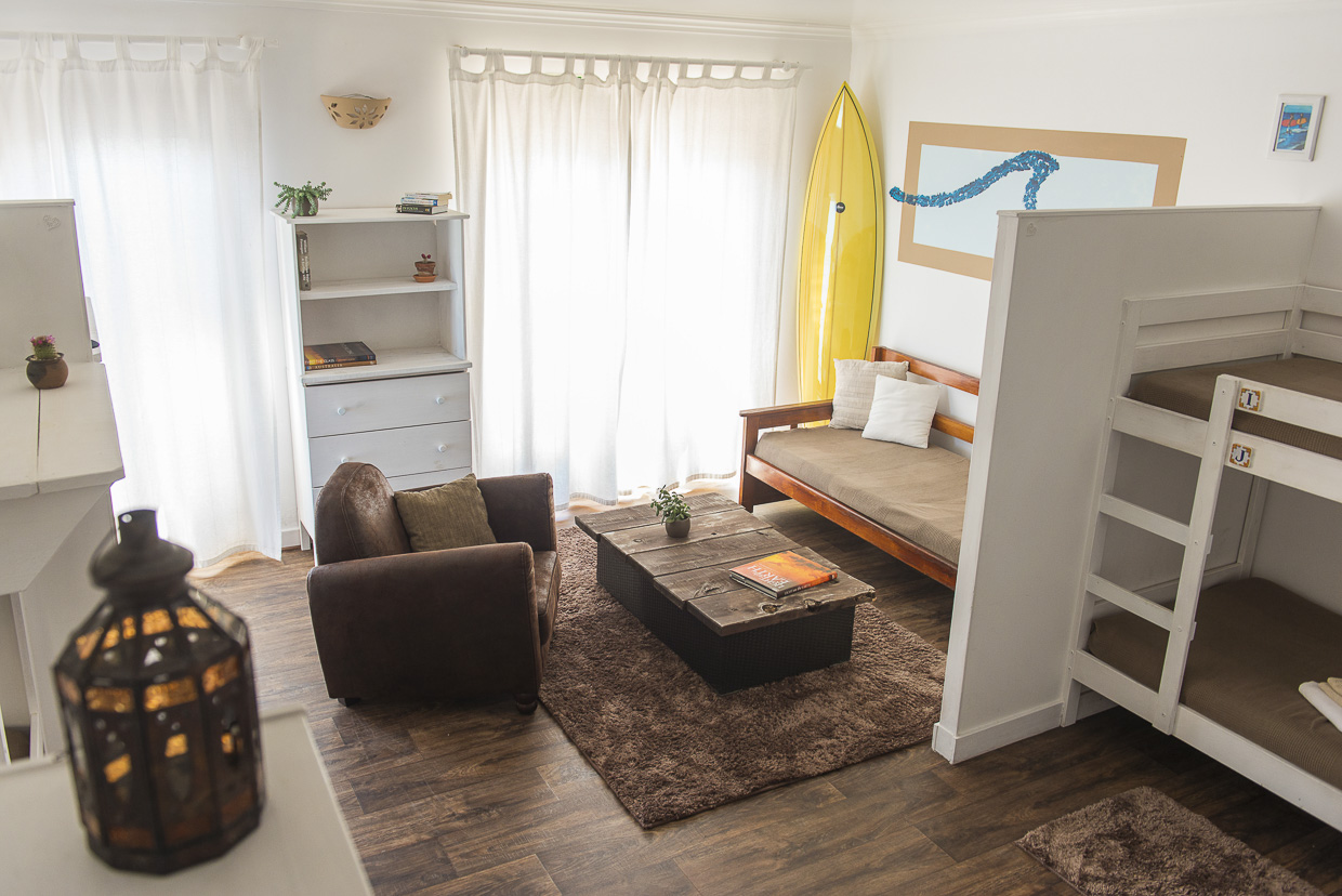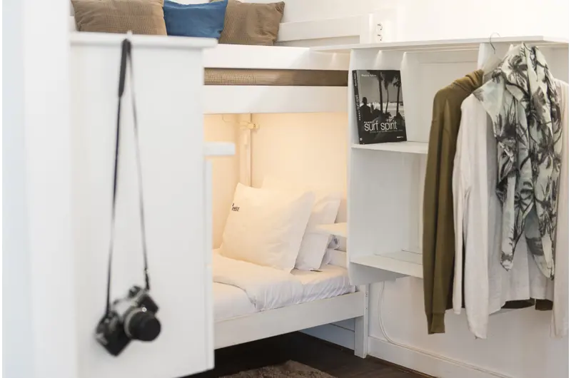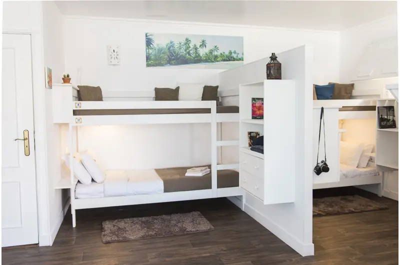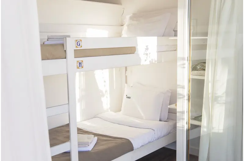 In “Wilbur K.” dormitory, you will find comfort and privacy on our 90cm wide beds with partitions, reading area, storage units, individual lockers and an amazing view over the ocean.