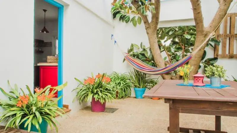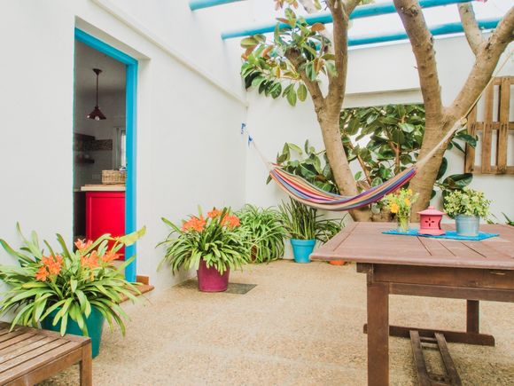 - Garden or terrace with hammocks, garden furniture, lounge chairs