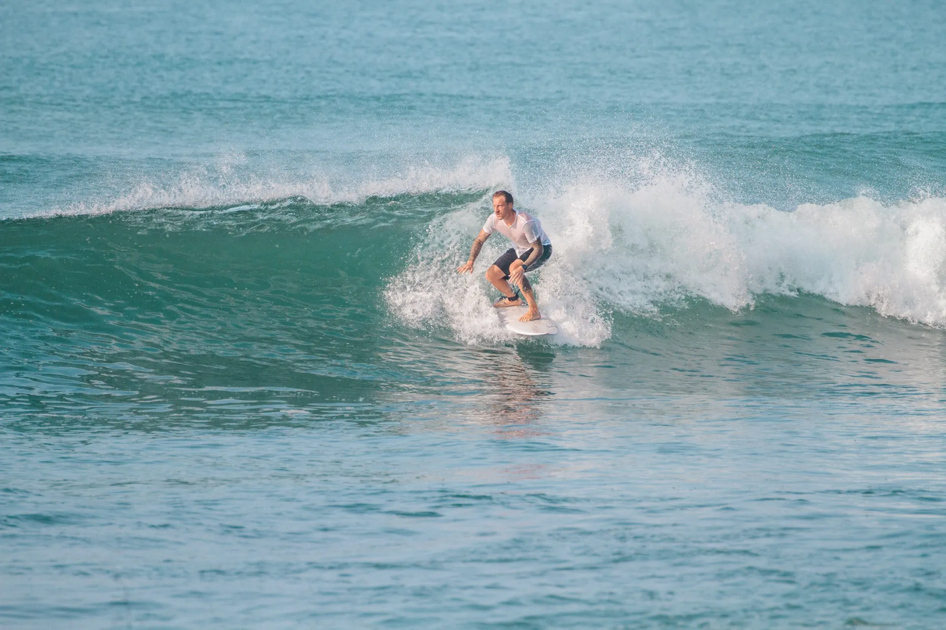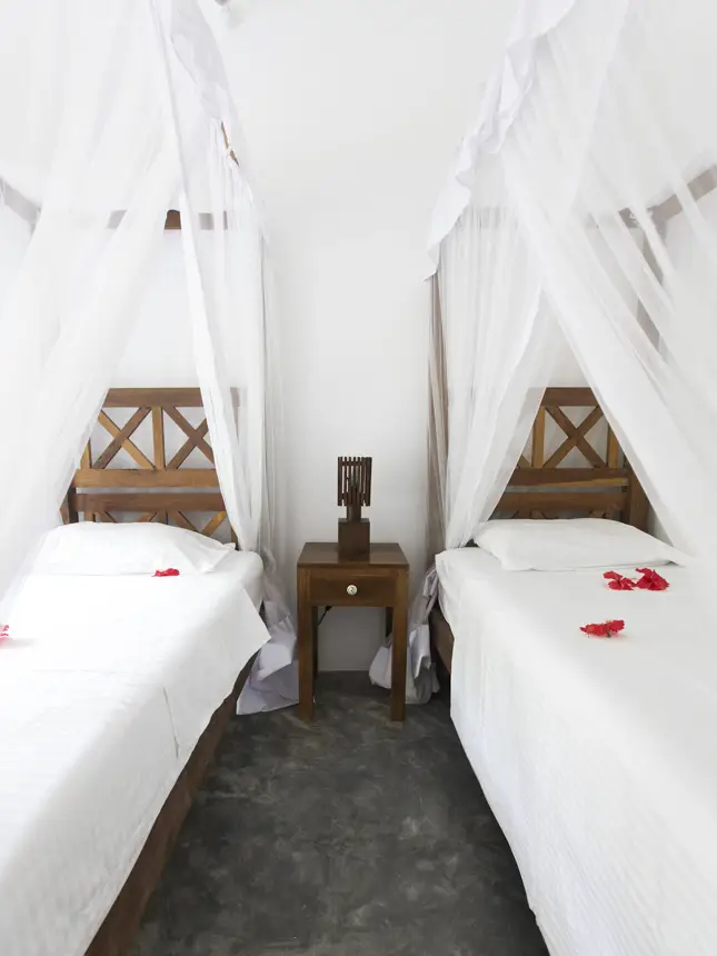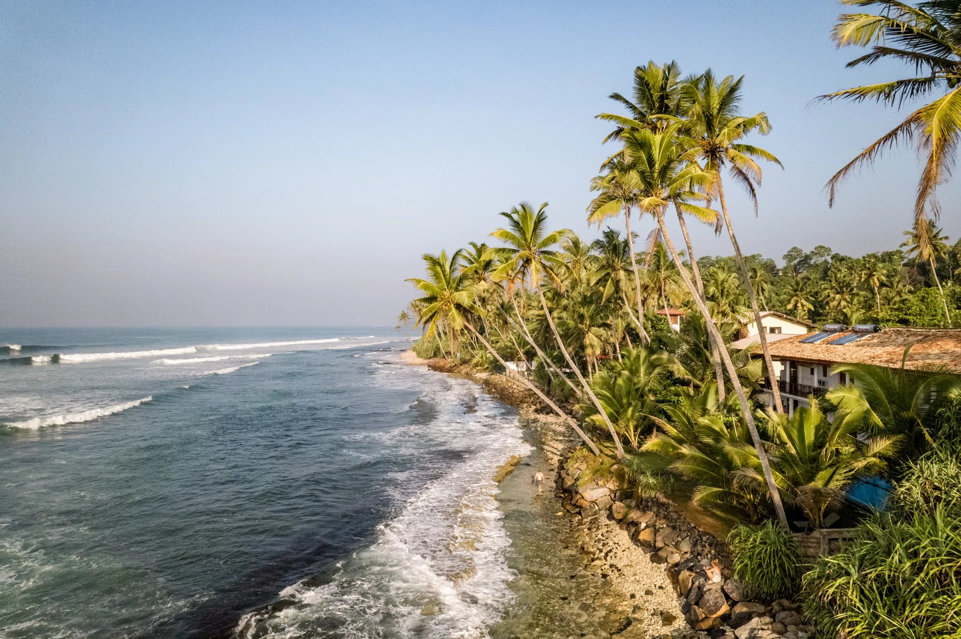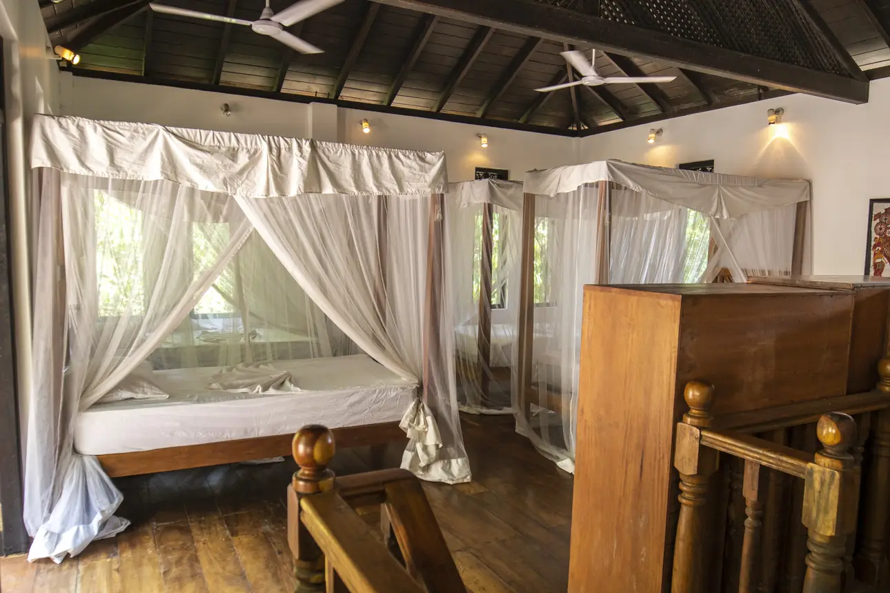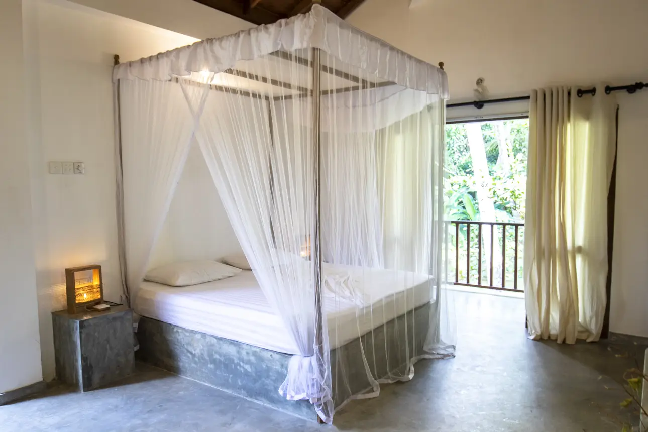 Our Surf House is tucked away from the noisy main road but still on the Ocean side. You will find our newly built Villa in the Cape of Weligama, a safe and well protected area lifted above ocean level. The Villa is very near the beach but yet still surrounded by a jungle green fauna where you are able to spot exotic animals like mongooses, lizards, peacock, kameleons and you can even see our monkey family swinging from tree to tree.